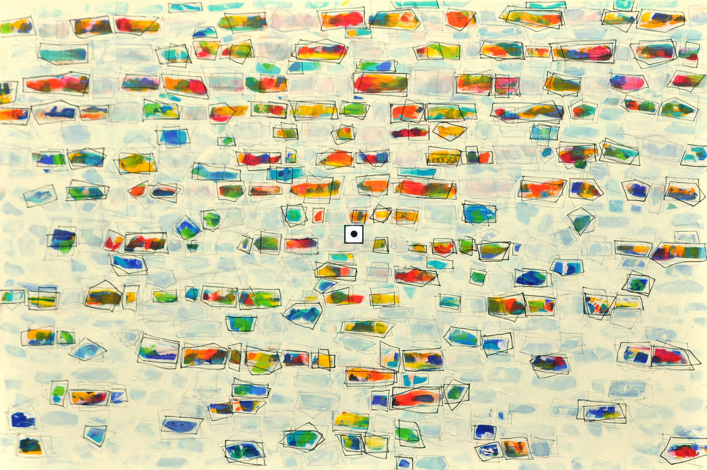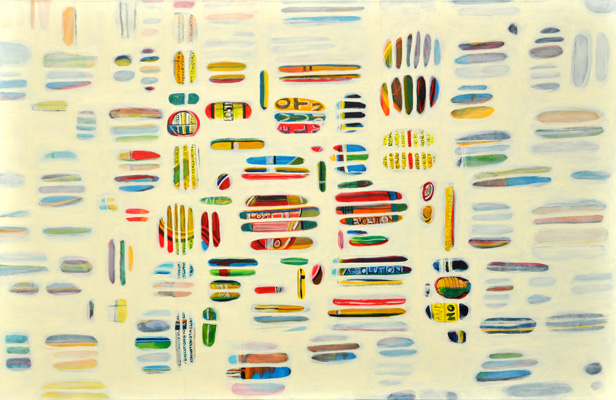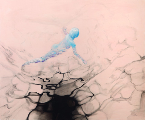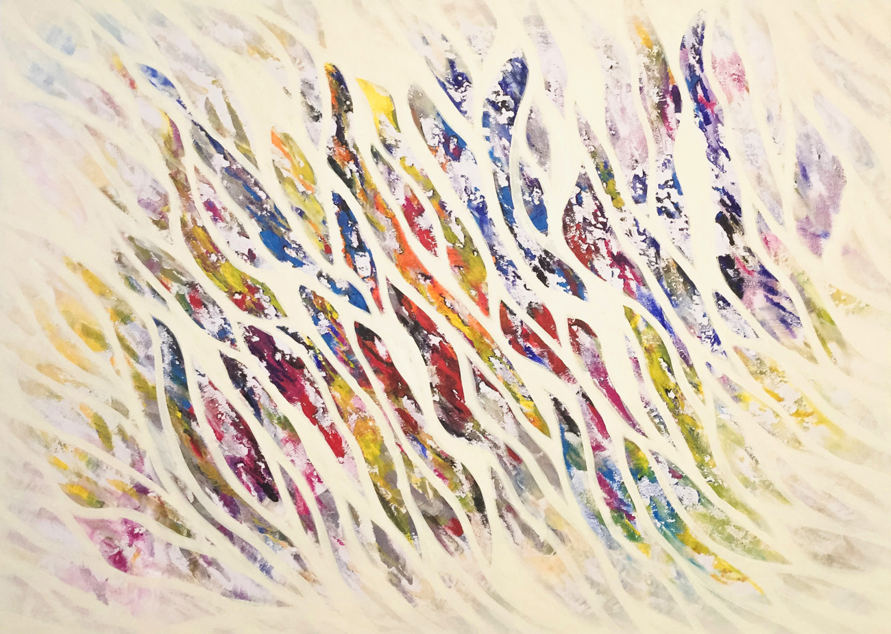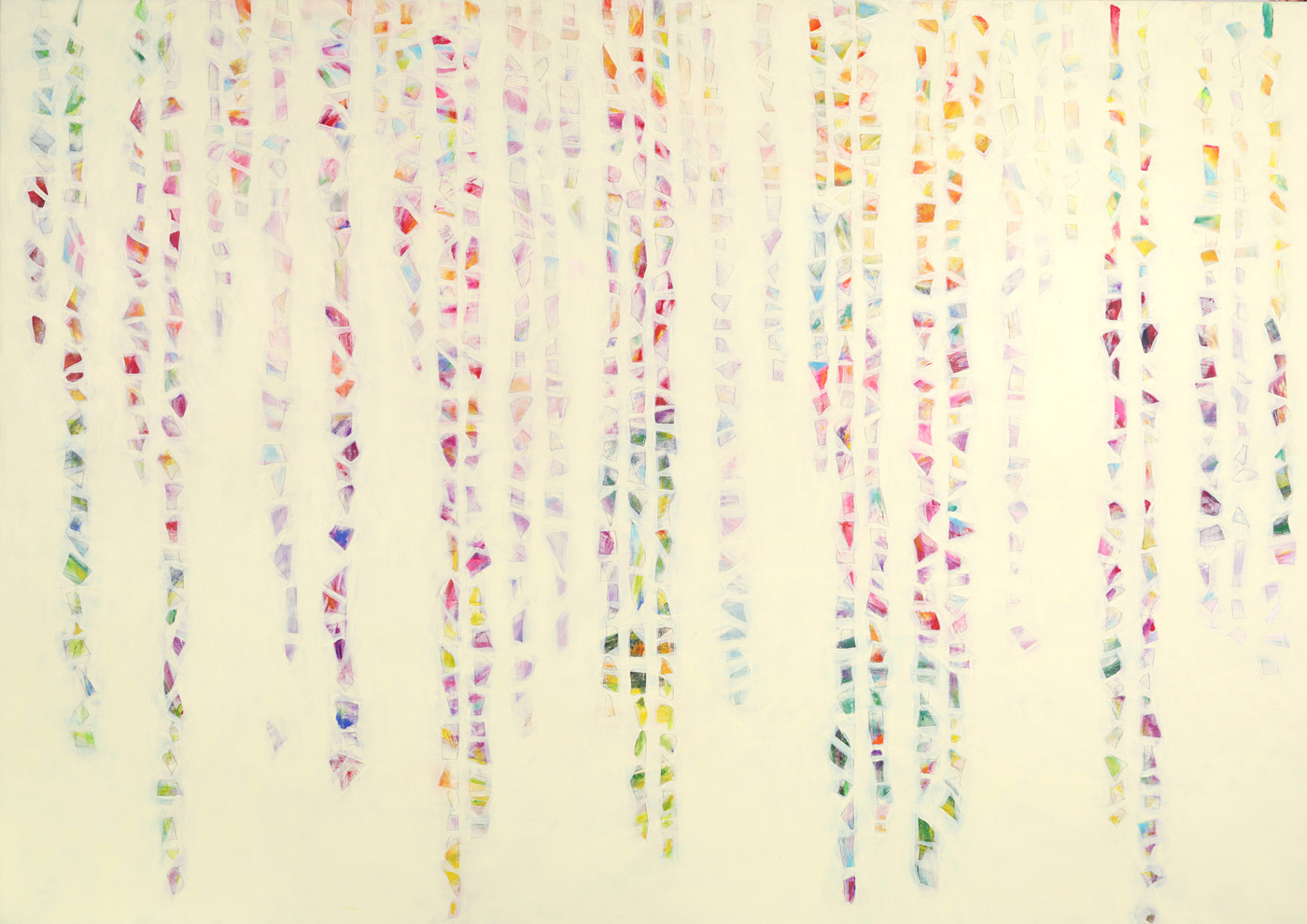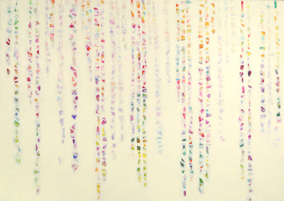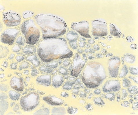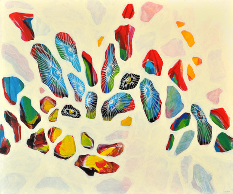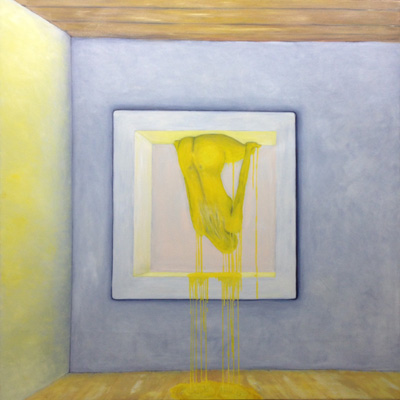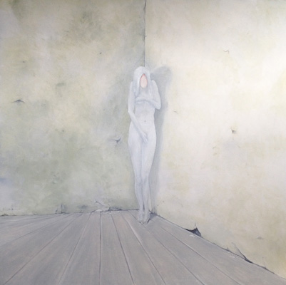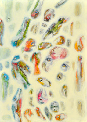 Hätte diese Veranstaltung vor zwei-, dreitausend Jahren stattgefunden, hätte ich Ihnen meine Worte aus dem Gedächtnis wahrscheinlich vorgesungen (Gott sei Dank leben wir im Heute). Ich hätte Memotechniken gebraucht – Tricks, um das Gedächtnis zum stützen – und hätte mich dabei auf poetische Strukturen verlassen: auf Reim, Rhythmus, Satzmelodie, auf kleine Brüche im Muster, an die ich mich gerade der Brüche wegen erinnert hätte. Ich wäre vorgegangen wie Elke Mischling in ihren elfenbeinumrissenen Arbeiten: ich hätte für mich und in mir eine Ordnung geschaffen, um mich an das zu erinnern, was ich singen, was ich erzählen will. Wir Menschen sind eben Sprachtiere- und noch dazu sitzt unsere Sprache zuerst lautlich organisiert im Hirn; erst dann folgen, auf den Klang drauf, Schichten von Bedeutung und Konzepten. Unsere Wörter, unsere erstarrten Metaphern, unsere Hauptwortballungen geben uns den Takt vor: BITTERSÜß sagen wir, nicht etwa SÜßBITTER. Süß kommt am Schluss, so wollen wir, dass es endet, es, wir und das Wort; zumindest im Wunsch, ganz nach Udo Jürgens: dass der Herrgott den Weg in den Himmel ihr bahne...aber bitte mit- süß. Da wollten wir aber das Bittere im Gleichsagen erledigt haben; aber lang ist das Wort, ruht sich aus auf dem satten Doppel-T und füllt seine Masse hin, wo es kann, es rollt Gold von der Frau, die kopfüber auf ihrem surrealen hochgekehrten Fensterbrett sitzt, es füllt einen Raum, in dem der ausgewachsene Embryo einer Frau schwebt, und stockt. Und manchmal schwappt die Bitternis über – in Elfenbein. Sie greift um sich. Das Süße verhält sich wie Splitter, wie ein Nachwort, eine winzige Öffnung, ein Trotzdem: eine Erinnerung, wie der Span in der Fingerkuppe ans Holzmachen erinnert. Etwa wie in "Nummer !=!", im Frühlingssturmblut", deckendes Mattweiß: Bitterüberzug über einer Farblichkeit, die Splittern, in Erinnerungen, süß aus dem Leinwandwinter ragen: da geht's um Urgewalten.Ebbe und Flut und die Frage, ob der Stein noch aus dem Wasser ragen wird, wenn es steigt, die Frage, ob der Sturm kommen, das Eis irgendwann knacken wird und wir atmen werden. Elke Mischling hat konsequent gearbeitet: da wird nichts knacken, der Moment ist tiefgefroren. Aber danken an diesen Moment, das dürfen wir. Schimmern, das darf der Moment. Aber unkenntlich gemacht ist das Farbmotiv dort, wo der Kitsch sein Medusenhaupt hebt aus dem Schlamm unserer innigsten Träume: schön verborgen hinter dem weißen Furor sind Frühling und Blumen. Trotzdem sieht mein inneres Kind und mein Auge, das ich fast 38 Jahre lang mit mir herumtrage und das ich ist, in mancher Elfenbein-Farbsplitter-Anordnung eine Schreibtisch von oben, ein locker gefülltes Bücherregal, eine Freude, das er schummelt sich mein daraufhin trainiertes, konnotiertes, assoziiertes Hirn: ja, mein Gott, Resignation steht da- aber auch Absolution und Revolution: Worte durch den Schleier. Anderes wirkt wie Augenschlitze, die Nummer 143: jeder Versuch, ein schmerzhaft-schönes Seeufer wie das Neusiedlerische auf einem Blick zu greifen, kann nur im Schrei der Vergeblichkeit enden, deswegen, gnädig, dürfen wir durch Elfenbeinschlitze, durch Schauscharten blickwerfen, ABER da drängt sich schon wieder von außen und rundherum etwas heran- das Große Weiß. Bei einem befreundeten russischen Künstler hab ich gelernt und sehen gelernt, dass Weiß den Tod meint (gut, hier ist das Weiß zumindest ein paar Schattierungen ins Leben hineingedunkelt)- dem Fischschwarm, das weiß ich, hat Elke nachgeholfen durch Augen, Form holen, Leben holen heraus aus diesem Schmelzweiß, dem Hitzeweiß, dem auffressenden Weiß, dem Schleier. Wie ist dann das Dunkle zu deuten? die Nachtblickbilder? Als Leben? Ein Gesicht, das in der Nichtfarbe Schwarz als Blau verborgen ist – ein Zwilling des Grabtuchs von Turin, das Schweißtuchs von Veronika, ein Schweben zwischen da und dort, hineingehängt zwischen oben und unten, zwischen die Wände eines Budapester Innenhofs, bänderumweht, gespannt in einem Rahmen, aus dem eine beutelnde, kitzelnde, haltende Hand wächst; windiges Pfeifen, klatschendes Flattern, abwartende Stille. Ruhe vor dem Sturm im Überwintern. Und wenn sie kein geübter Kunstanschauer sind und sich fragen, wie Sie schauen sollen, damit Ihnen die Bilder etwas erzählen, dann kommt hier ein Vorschlag: borgen Sie sich ein Auge aus in Nr. 102 und singen Sie durch seine Lider.